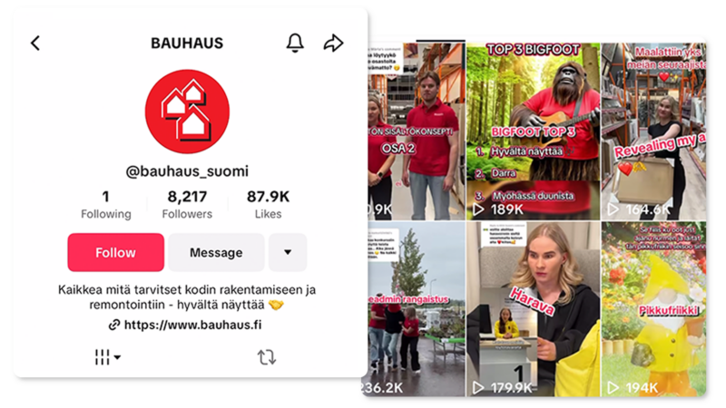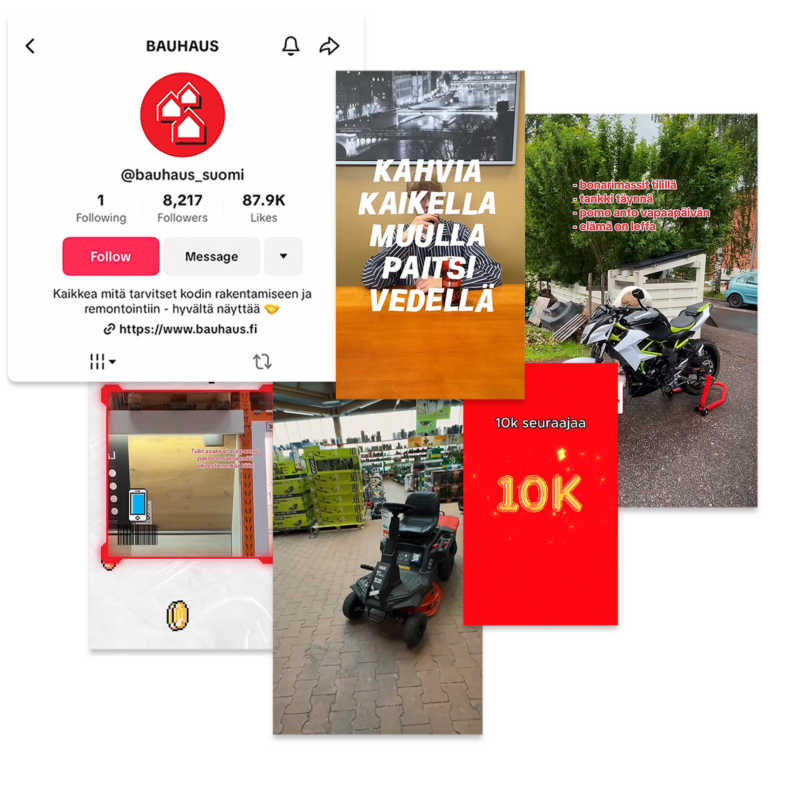 Polkaisimme BAUHAUSin TikTok-tilin erittäin onnistuneesti käyntiin vuoden 2025 tammikuun viimeisenä päivänä. Tili kasvoi nopeasti, ja kevään vaihtuessa kesään seuraajia oli kertynyt jo noin 7 500.