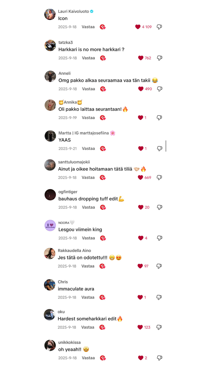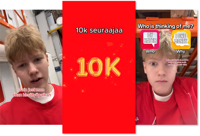 Toteutuksessa panostimme vahvasti autenttisuuteen. Rakensimme sisältöä siten, että TikTokin algoritmi ja käyttäjäkokemus ohjasivat tekemistä. Perehdyimme kohderyhmän FYPiin ja hyödynsimme sieltä poimittuja ajankohtaisia ilmiöitä, kuten mopoedittejä, filttereitä ja teinien huumoria, luodaksemme uskottavan ja kanavanatiivin kokonaisuuden. Nappasimme pienimmistäkin nyansseista koppia ja lähdimme luomaan someharkkarista ilmiöitä.