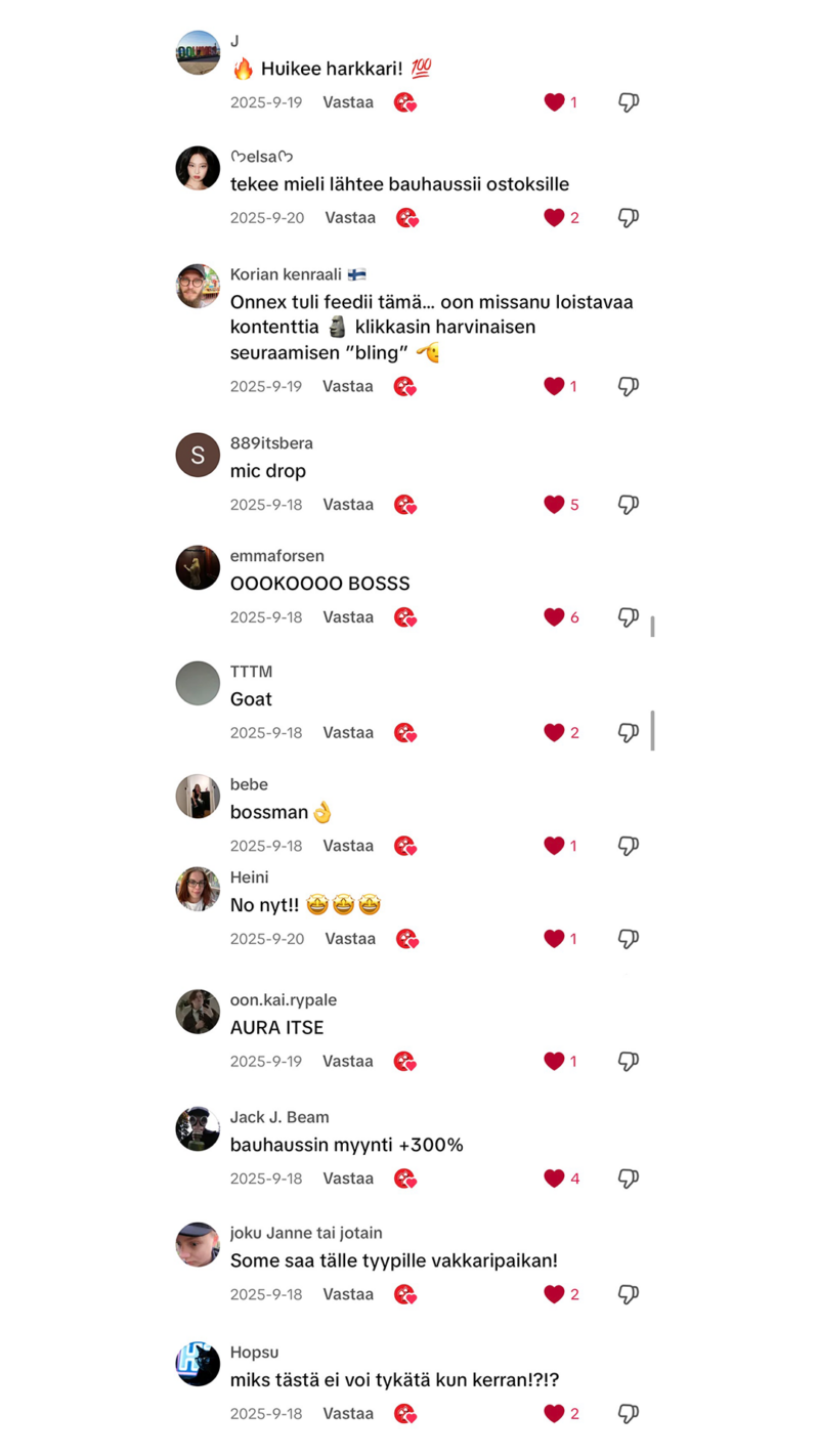 Alun menestyksen jälkeen nostimme rimaa kuitenkin seuraavalle tasolle. Asetimme uudeksi tavoitteeksi 10 000 seuraajaa, ja aikataulu oli tiukka: yksi kuukausi. Tavoitteenamme oli nostaa BAUHAUS uudelleen Suomi-TikTokin kuumimmaksi puheenaiheeksi ja vahvistaa brändin asemaa erityisesti Z-sukupolven sekä vanhimpien Alpha-sukupolven edustajien keskuudessa. Samalla halusimme kuitenkin pitää kiinni myös jo olemassa olevasta, hieman varttuneemmasta seuraajakunnasta.
