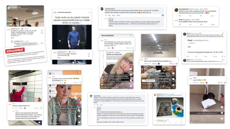 Uusi strateginen lähestyminen alkoi konkretisoitumaan vuonna 2025. Pääkanavien seuraajamäärät kasvoivat merkittävästi ja sisällöt resonoivat entistä paremmin eri kanavissa ja kohderyhmissä – sisältöjen sitoutumiset kasvoivat verrattuna edellisvuoteen yli 90 %. T-Median tutkimus Postin brändimielikuvasta osoitti erityisesti nuorimman ikäryhmän suhtautumisen parantuneen huomattavasti, mikä osaltaan vahvisti sen, että kanavakohtainen ja tunnetasoon perustuva strategiamme toimii.